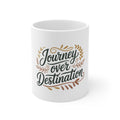 A stylish and versatile mug, featuring the phrase 'Journey over destination'. Perfect for those who appreciate the beauty of the journey in life. Ideal for coffee or tea lovers, travel enthusiasts, and those who value mindfulness and personal growth. Great for gifting on birthdays, holidays, or as a motivational pick-me-up.